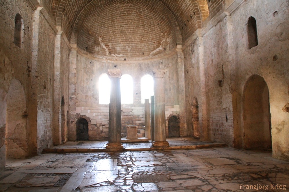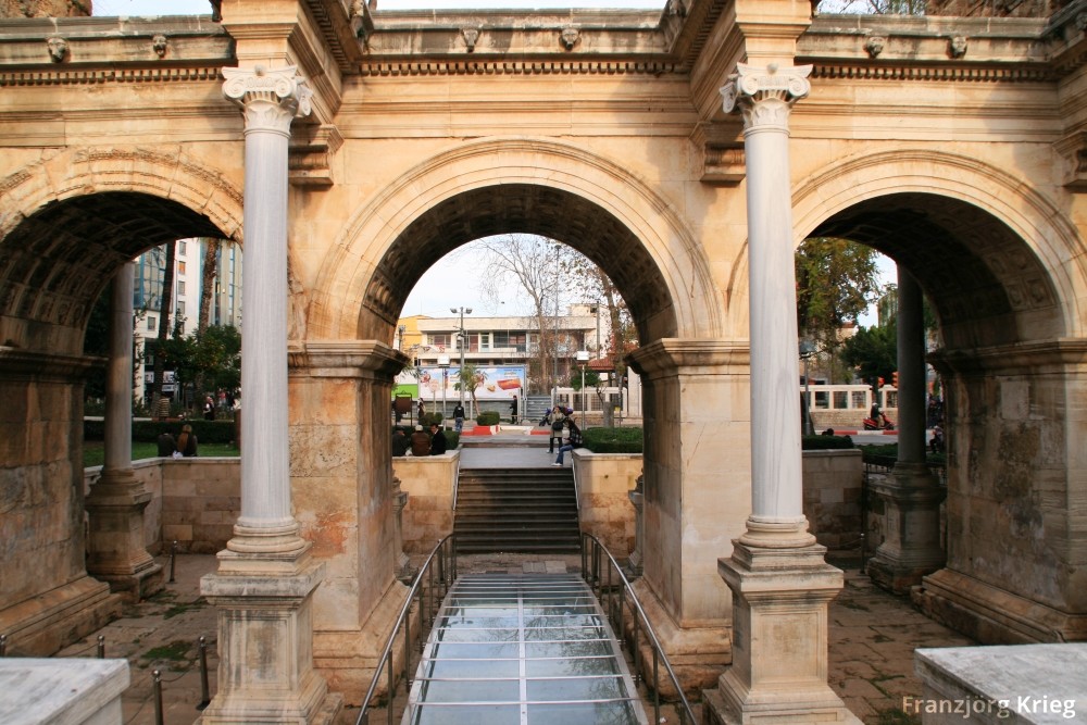 Antalya – Hadrianstor. Der Steg schützt die antiken Wagenspuren