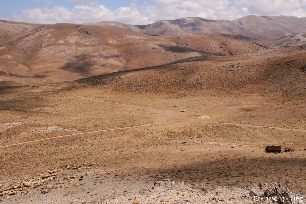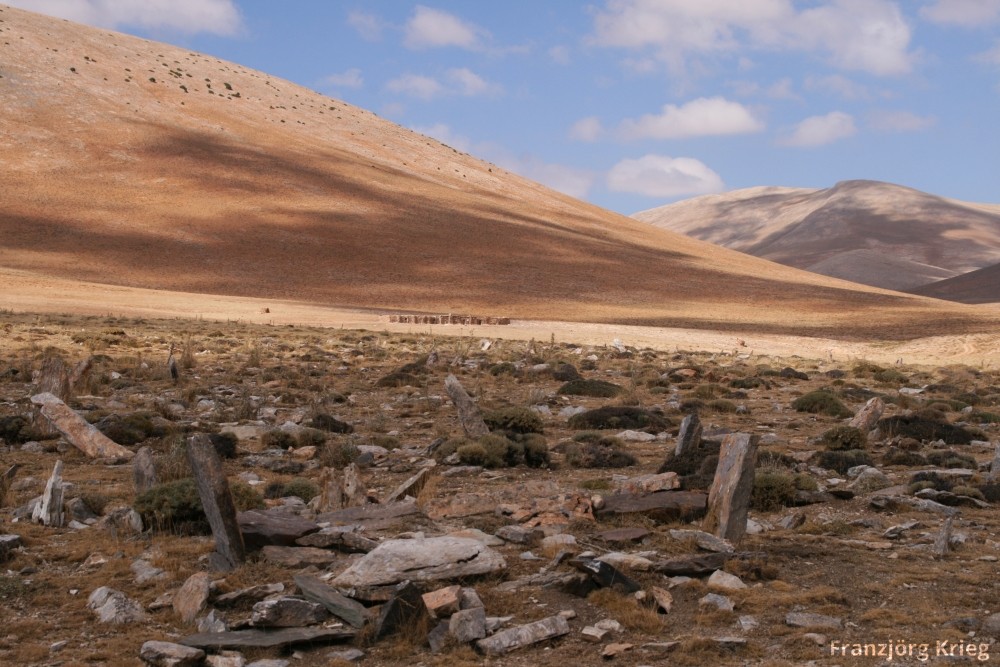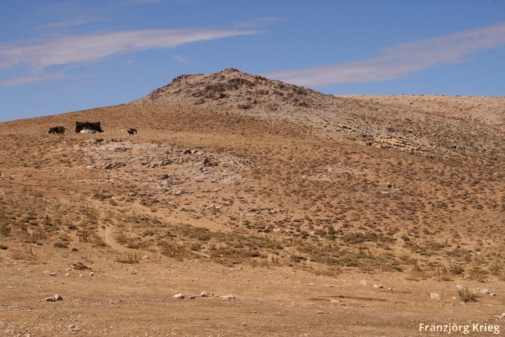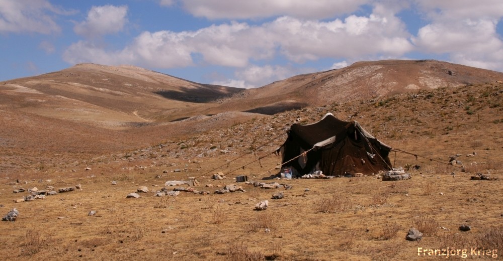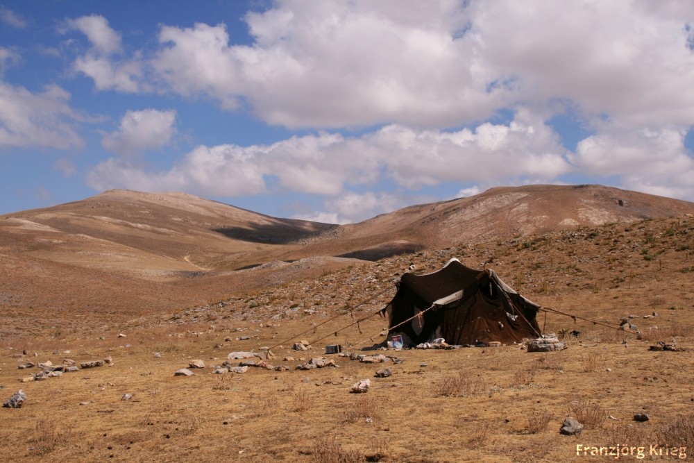 In den Bergen darüber stehen bei kleinen Quellen einzelne Zelte