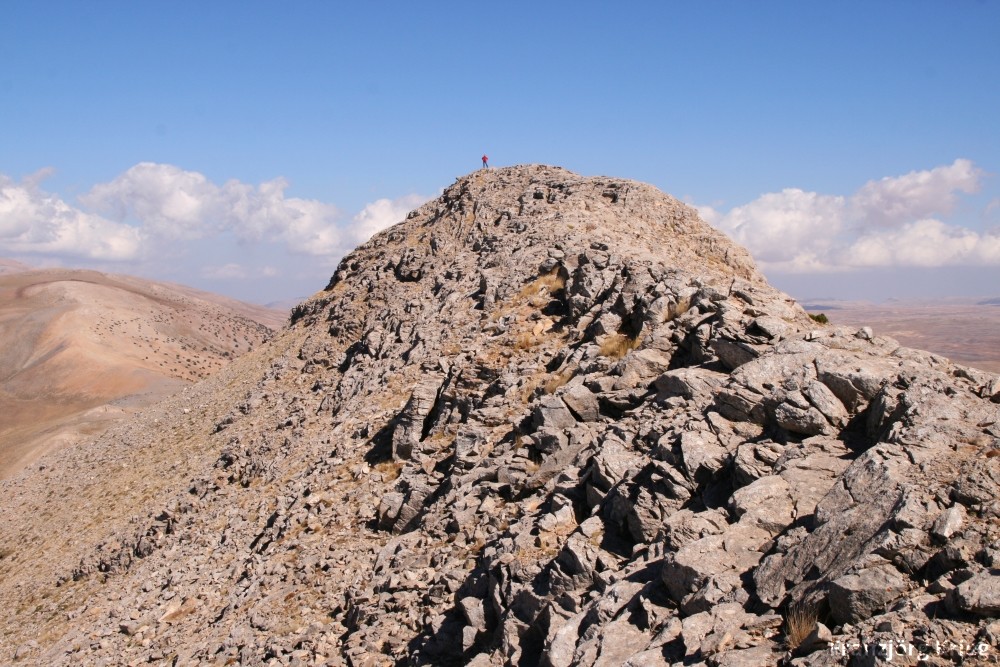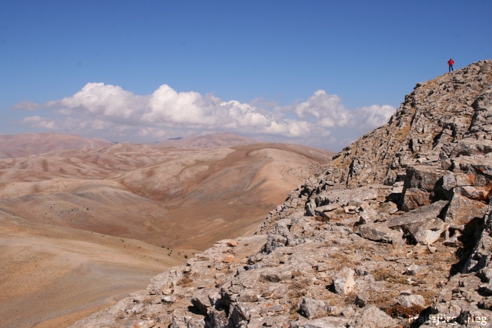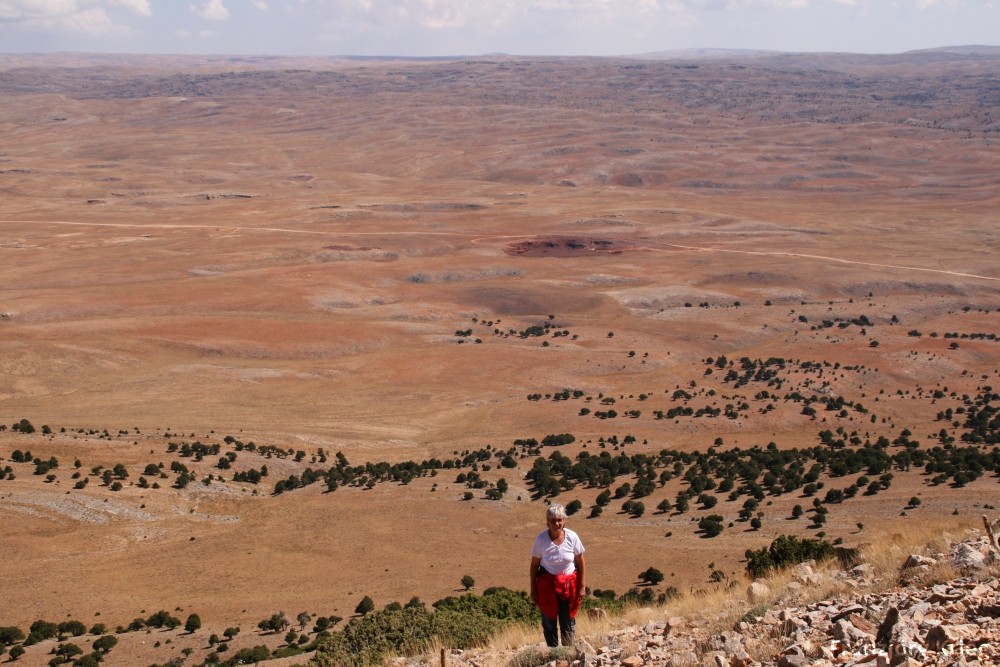 Ein seltene Erscheinung: An der Grenze zwischen Kalk und Bauxit eine Höhle mit Kalzitkristallen, die vom Bauxit rot gefärbt sind.