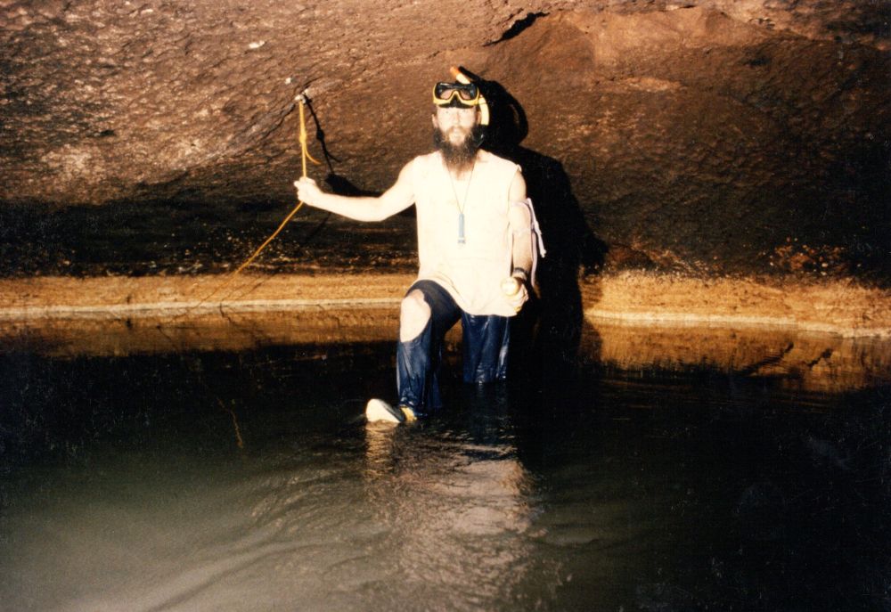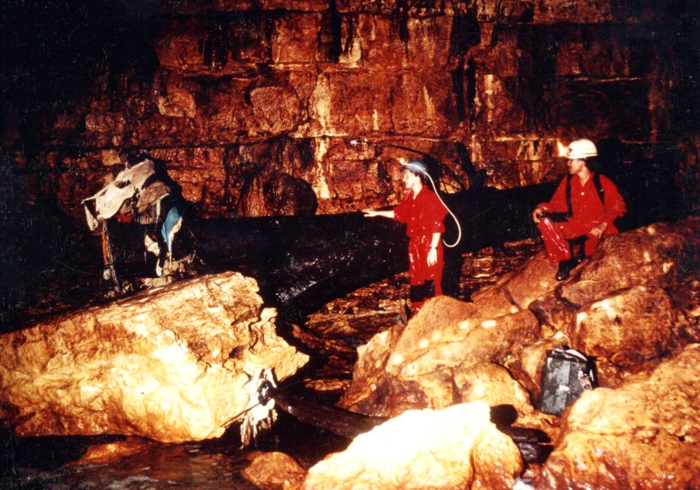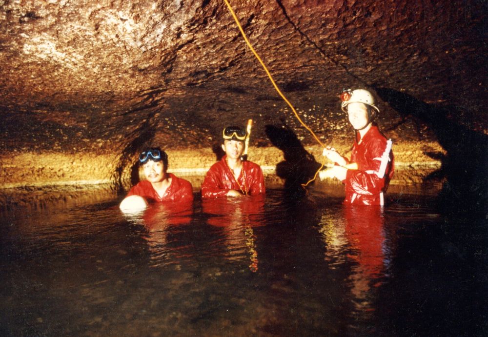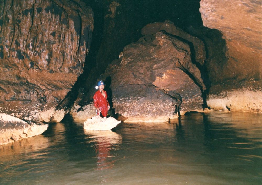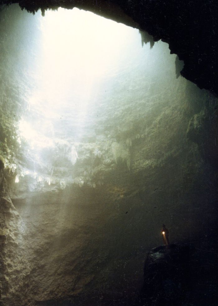 Diese war schon benutzt und ist mit vielen Einbauten und Inschriften versehen. Eine Schrecksekunde bescheren die plötzlich im Taschenlampenkegel auftauchenden lebensgroßen Figuren, die an Personen erinnern, die in der Höhle während Unruhen überleben konnten.
