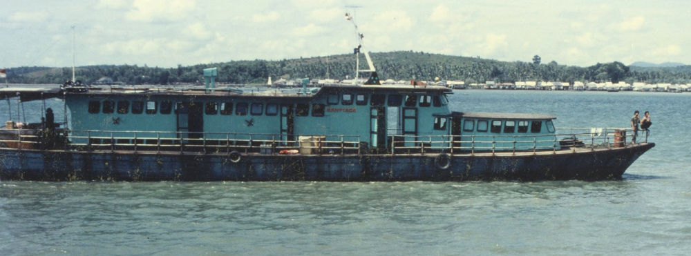 Ankunft am 22.02.1990 im Hafen von Pekanbaru (Sumatra) mit einem ziemlich heruntergekommenen Flussschiff. Aber wir kamen an – und die Stimmung war bestens.
