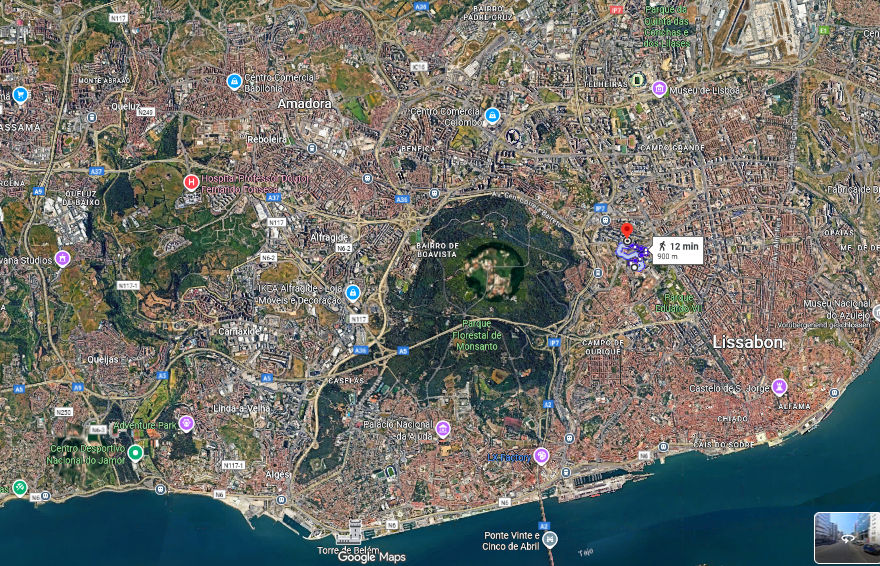 Die Hohe Säule trägt eine Christusstatue, die zwar auf der Südseite des Tejo steht, trotzdem aber Wahrzeichen von Lissabon darstellt. Die Brücke sieht man oben auf der Karte ebenfalls.