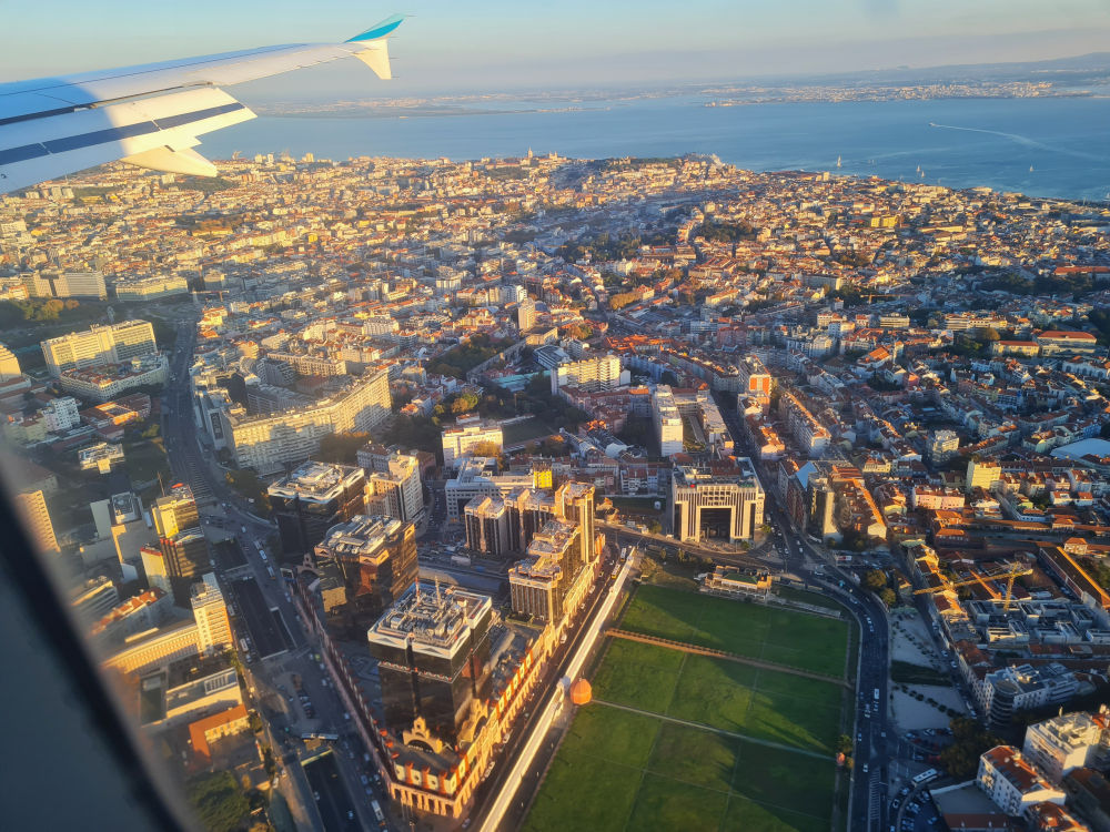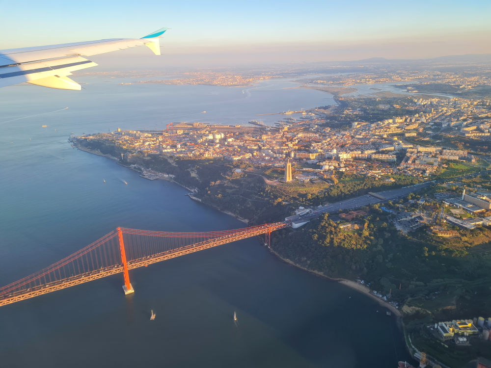 Schon vom Flugzeug aus konnte man die Brücke des 25. April sehen (Tag der Befreiung von der faschistischen Diktatur).