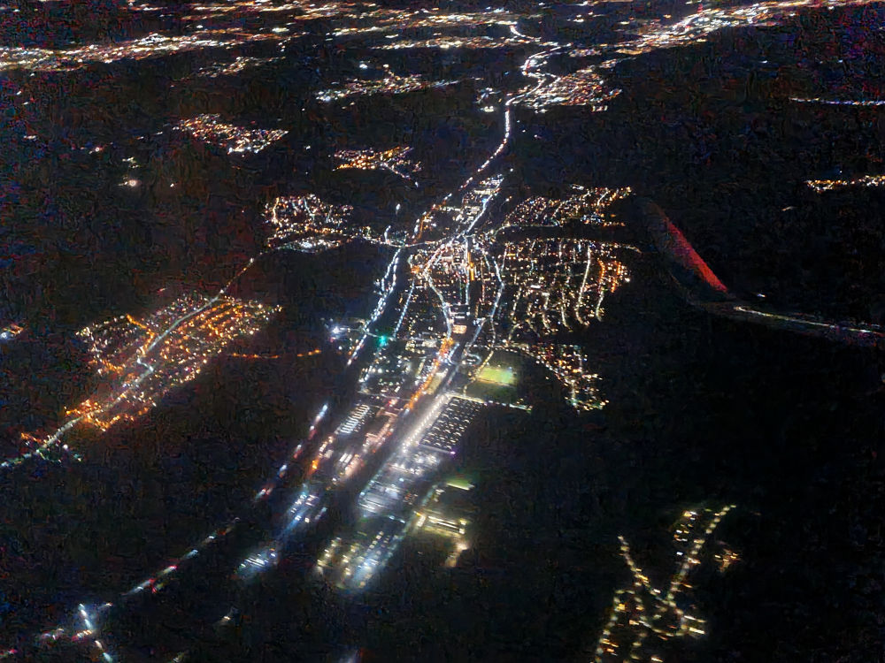 Und die Kondensstreifen über dem Hotel zeigen die Lage des Flugplatzes an